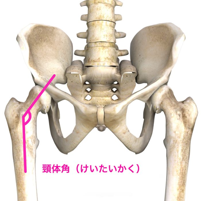 股関節は、体重を支える重要な関節で、「頸体角(けいたいかく)」という外側に角度がついた構造をしています。