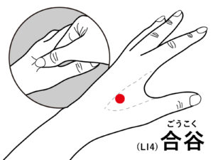 人差し指と親指の間に「合谷(ごうごく)」というツボがあります。