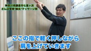 ・押したまま肩を上げていきます