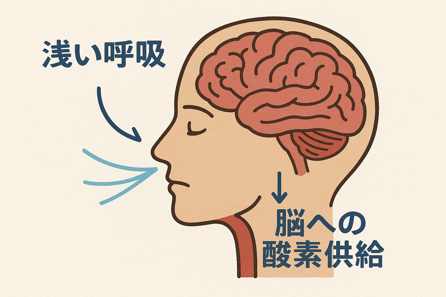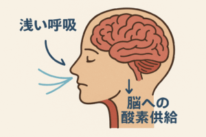 呼吸が浅くなり、酸素の供給が減ることで体は疲労を起こし、脳への血流も悪くなってしまうのです。