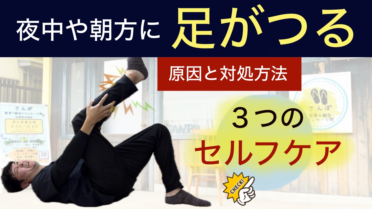 夜中や朝方にふくらはぎがつる「こむら返り」は、水分不足・冷え・筋肉疲労・姿勢の歪みなど、生活習慣や体の状態が大きく関わっています。