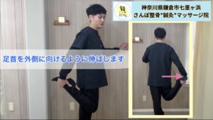 その際に、足を外側に開くようにします