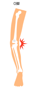 ・膝の部分が広がり「O」の形にみえるためO脚と言われる