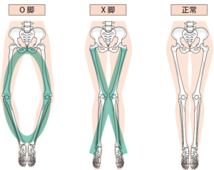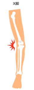 ・足首同士が開くため「X」の形に見えるのでX脚と言われる